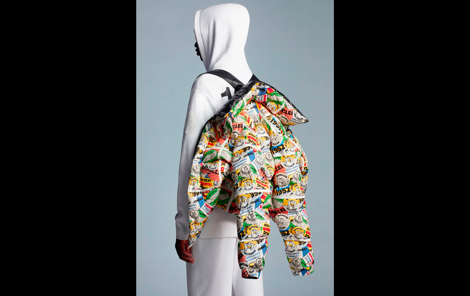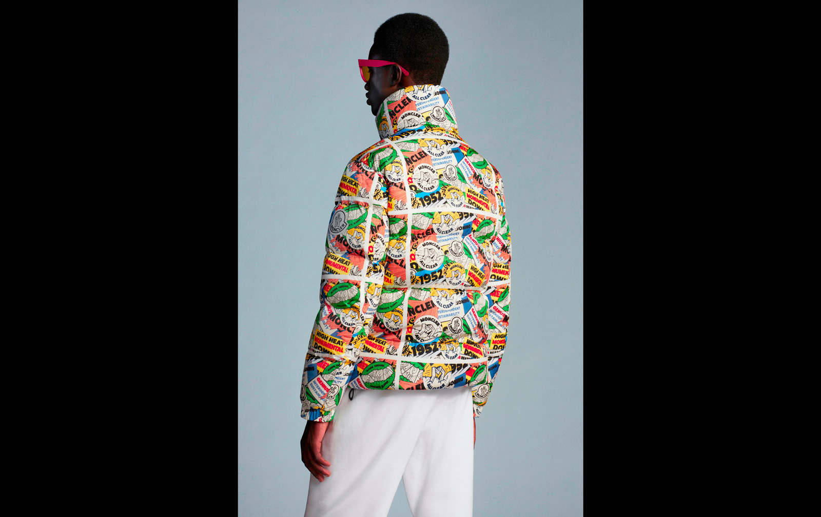 For this collaboration, I created an allover pattern inspired by the ubiquity of stickers in urban spaces, collaging, wordplay, aspects of Moncler's history dating back to 1952 and, the street meets slopes philosophy of the brand. The starting point for the pattern was my Lagos patterns project and my desire to have a lot of clothing colour during winter.
